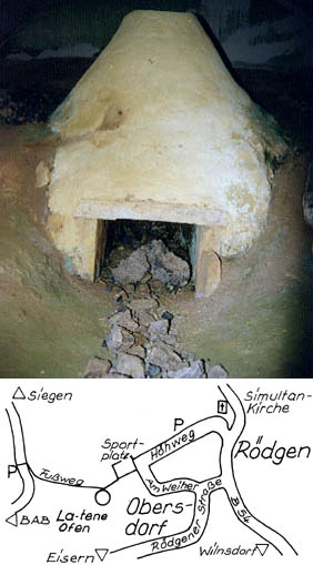 Die Verhüttung von Rotspat, Braun- und Spateisen unter Verwendung von Holzkohle läßt sich im Siegerland bereits in der La-Tène-Zeit nachweisen. Sie erfolgte zu dieser Zeit in einem sogenannten Windofen. Mehrere solcher Öfen aus der Zeit um 500 v. Chr. bildeten einen latènezeitlichen Hüttenplatz an der Silberquelle in Wilnsdorf-Oberdorf (Rödgen) und wurden in den 50er Jahren des 20. Jahrhunderts bei einer Ausgrabung gefunden. Etwa 150 m oberhalb der Fundstätte entstand eine Rekonstruktion eines der Öfen, die den damaligen Wissensstand der Archäologie wiedergab.