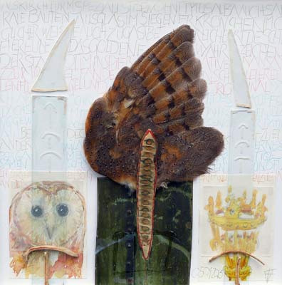 Die technische Vielfalt seiner Bilder in Bleistift, Tusche, Aquarell, Öl, Pastell, Mischtechniken und Collagen zeugt von Spaß, Motivation und ständig neuem Ausprobieren. Oft werden auch Fundstücke aus der Natur in seinen Werke impliziert und verarbeitet und damit in einen neuen Kontext gestellt."