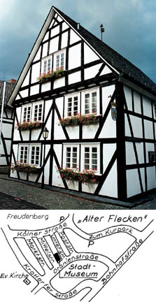 In dem Fachwerkgebäude in der Freudenberger Mittelstraße 4 präsentiert sich auf 4 Etagen das „Mittendrin-Museum“ mit den 4 Schwerpunkten Kunst, Geschichte, Kreativität und Uhren-Tradition. Mittendrin heißt, mitten in unserer Altstadt, dem „Alten Flecken“ – einem Baudenkmal von internationaler Bedeutung.