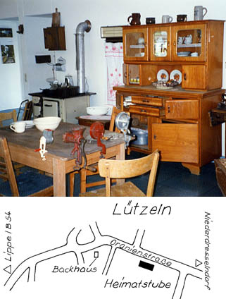 Lützeln gilt als älteste der vier Ansiedlungen des Hickengrundes, die bereits in Urkunden des 9. Jahrhunderts Erwähnung finden. In einer Urkunde von 1349, mit denen Graf Otto von Nassau die Dörfer Dresselndorf und Lützeln als Mann- und Burglehen den Ganerben von Haiger übereignete, wird die schriftliche Überlieferung der Ortsgeschichte fortgesetzt. Eine Viehschatzungsliste aus dem Jahre 1447 nennt für Lützeln nur vier Haushaltsvorstände, von denen einer als Fuhrmann und Landwirt tätig war. Nach der nassauischen Erbteilung von 1609 wurden die Dörfer des Hickengrundes der Vogtei Burbach, nach dem Wiener Kongress Preußen und dem Siegerland zugeordnet. Landwirtschaft und Bewirtschaftung des Haubergs konnten wohl zu keiner Zeit das Auskommen der Dorfbewohner sichern. Sie betätigten sich als Fuhrleute und suchten ihren hauptsächlichen Broterwerb außerhalb der Dorfgrenzen, manche kehrten nur an den Wochenenden zu ihren Familien zurück. Mit der beginnenden Industrialisierung fanden viele Männer aus Lützeln in Neunkirchen und dem weiteren Siegerland im Bergbau und wohl auch in der Hüttenindustrie Beschäftigung. Durch die Anlage eines Basaltbruches wurde im Jahre 1892 die erste Industrie in Lützeln angesiedelt. Dem folgte im Jahre 1911 die Errichtung einer Steinbruchanlage, deren Kernstück, der Steinbrecherturm, noch heute das Wahrzeichen des Ortes ist. In den Jahren 1923-1925 waren hier 600 Arbeiter beschäftigt, die Stilllegung des Betriebes erfolgte um 1939. Die Schulgeschichte des Ortes beginnt mit der Errichtung des ersten Schulgebäudes im Jahre 1769. Vorher gingen die Lützelner Kinder in Oberdresselndorf zur Schule. Bei der schweren Brandkatastrophe von 1881 wurden 60 Gebäude, nahezu der gesamte Ort, ein Raub der Flammen. Aus der Schule konnte lediglich die Glocke gerettet werden, die dann in dem bereits im Jahre 1866 errichteten neuen Schulgebäude ihren Platz fand. An dieses Gebäude wurde im Jahre 1882 eine Wohnung für den Dorfschullehrer angebaut. 1929 erfolgte der Bau eines neuen Schulgebäudes. An die alte Dorfschule wurde im Jahre 1989 ein Dorfgemeinschaftshaus angebaut, in dessen Räumen sich heute die Heimatstube von Lützeln befindet. Neben Reproduktionen der alten Urkunden zur Dorfgeschichte werden hier Exponate aus der Land- und Haubergswirtschaft sowie dem dörflichen Arbeits- und Alltagsleben gezeigt. Zur Dokumentation der Schulgeschichte ist ein kleines Klassenzimmer mit Mobiliar, alten Karten und Schulbüchern zusammengestellt worden. (Dieter Pfau in: "Museen und Heimatstuben Siegerland-Wittgenstein").