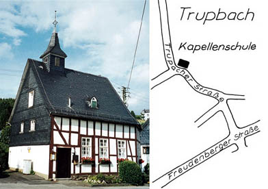 Zahlreiche Grabungsfunde belegen eine spärliche und nicht dauerhafte Besiedlung der späteren Trupbacher Gemarkung bereits in der Jungsteinzeit um 3000 v. Chr. Eine erneute Ansiedlung in der La-Tène-Zeit belegen Scherben-, Werkzeug- und Keramikfunde. Die Datierung weiterer Keramikfunde weist schließlich auf das Vorhandensein zweier Höfe in der karolingischen Zeit um 900 n. Chr. hin. Die schriftliche Überlieferung setzt mit einer zeitlich nur vage einzuordnenden Nennung des Ortes "Drupbach" um 1300 ein. Die erste Urkunde mit sicherer Datierung belegt die Übertragung des Zehnten zu Trupbach an den Grafen zu Wildenburg durch die niedere Adelsfamilie von Achenbach, die bis zum Jahre 1802 bestand hatte. Ebenfalls in früher Zeit (1432) wird das in der Trupbacher Gemarkung gelegene Hofgut Heimbach erwähnt, auf dessen Grund im 15. Jahrhundert eine kleine Kapelle stand. Neben den Wildenburgern besaßen auch die Adeligen von Hees einen Hof in Trupbach. Um 1700 hatte Trupbach 145 Einwohner und 21 Wohngebäude. Bis zum Jahre 1818 stieg die Zahl auf 175 Einwohner und 26 Häuser, die Männer bewirtschafteten zumeist eigene Höfe, lediglich drei Männer arbeiteten im Bergbau. Bergbau wurde im 18. Jahrhundert in Trupbach nur in wenigen kleinen Gruben betrieben. Eine der aufwärts strebenden Gruben war die "Engelszuversicht" als Zulieferer für die Wendener Hütte. Zur Mitte des Jahrhunderts entstanden weitere Gruben, die den nun einsetzenden enormen Aufschwung des Bergbaus auch in Trupbach belegen. Im Jahre 1897 wurden nur noch 12 Landwirte und bereits 25 Bergleute gezählt. Der Trupbacher Reckhammer, dessen Gründungszeit nicht bekannt ist, wurde im Jahre 1846 zur Eisenhütte umgebaut - übrigens der erste Hochofen im Siegerland, der mit Steinkohle statt mit Holzkohle befeuert wurde. Der Weg in die Industriearbeit und den Bergbau führte nur vereinzelt dazu, dass die Landwirtschaft aufgegeben wurde. Die kleinen Höfe wurden von den Familien meist ebenso weiter bewirtschaftet wie der über die Haubergsgenossenschaft geregelte Anteil an der Niederwaldfläche. Im alten Ortskern von Trupbach steht noch heute die im Jahre 1739 erbaute Kapellenschule. Sie trat die Nachfolge der alten Schulkapelle an, die um das Jahr 1670 erbaut wurde. Als Schule und Andachtsraum war die Trupbacher Kapellenschule der geistige Mittelpunkt des Dorfes. (..) Heute ist die alte Schule, deren Dachstuhl zum Ende des Zweiten Weltkrieges stark beschädigt worden war, wieder der Ortsmittelpunkt und wird für viele Zusammenkünfte des Heimatvereins genutzt.