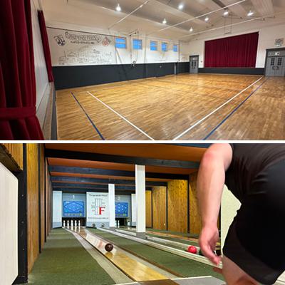 Turn- und Veranstaltungshalle, 2 Bühnen, Publikumsgarderobe vorhanden, 2 Kegelbahnen (können gemietet werden) incl. 2 Dart-Anlagen. Ausreichende