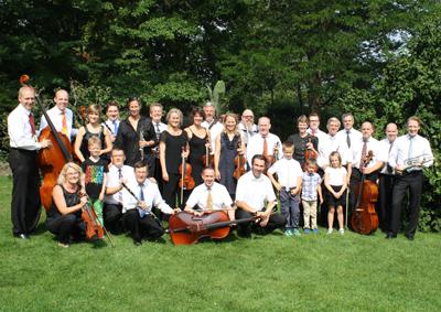 8 Violinen, Viola/Gitarre, 3 Violoncelli, Bass, 2 Flöten, 2 Klarinetten, Oboe, 2 Trompeten, Posaune, Schlagzeug/Percussion, Piano-Direktion.