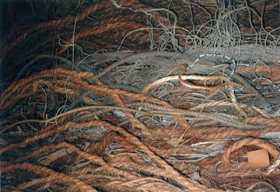 Gestickte Mosaiken, Paramentik, Textildesign mit Naturfasern (Seide, Wolle, Leinen), Bilder und Skulpturen in freier Gobelintechnik.