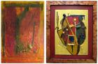 Öl auf Leinwand, Collagen, Ölspachtelarbeiten, Bilder auf Rundhölzer, Objekte