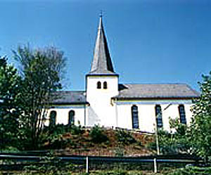 Der Kirchturm steht auf romanischen Fundamenten. Ob auch romanische Substanz im aufgehenden Mauerwerk vorhanden ist, wurde noch nicht abschließend untersucht. Erwähnenswert ist im Turm die gusseiserne Gedenktafel von 1765 mit lateinischem Text, die ein Zeugnis der damaligen Eisengießerkunst des Siegerlandes darstellt sowie das über der Kirchentür an der Außenwand befindliche Sandsteinrelief von Wolfgang Kreutter aus dem Jahre 1953 mit der Szene der Taufe Jesu im Jordan durch Johannes den Täufer. Das Glockengeschoss bildet ein Quadrat von ca. 4,7 m Seitenlänge bei einer Mauerstärke von immer noch 1,15 m. Der Turm verfügt auf jeder Seite über gewölbte Schallöffnungen mit einer Höhe von 1,80 m sowie einer Breite von 0,70 m mit Rundbogenabschluss. Die Glockenanlage Das Läutewerk wird simultan genutzt und enthält drei Glocken. Die älteste aus dem Jahre 1512 stammende Glocke ist die Marienglocke. Sie hat ein Gewicht von ca. 300 kg. Die zweite Glocke ist dem heiligen Martin geweiht und stammt aus dem Jahre 1924. Diese Glocke hat ein Gewicht von ca. 500 kg. Die schwerste der drei Glocken mit einem Gewicht von 723 kg stammt aus dem Jahre 1959. Diese Glocke trägt keinen eigenen Namen, ist aber mit einem Vers des Obersdorfer Dichters Wilhelm Schmidt verziert.