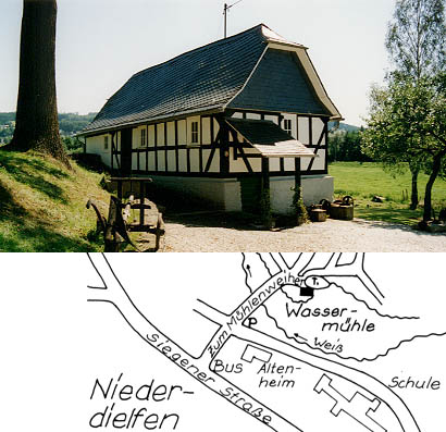 Diese alte Mühle, die in unmittelbarer Sichtweite von Realschule und Grundschule Niederdielfen steht, wurde mit den noch überwiegend vorhandenen technischen Einrichtungen 1992/93 funktionstüchtig restauriert. Neben der Mühle wurde früher eine Langholzsäge angetrieben, deren technischer Aufbau heute noch sichtbar ist. Die Gemeinde hat dieses technische Kulturdenkmal der Öffentlichkeit zu Anschauungs- und Bildungszwecken zur Verfügung gestellt.