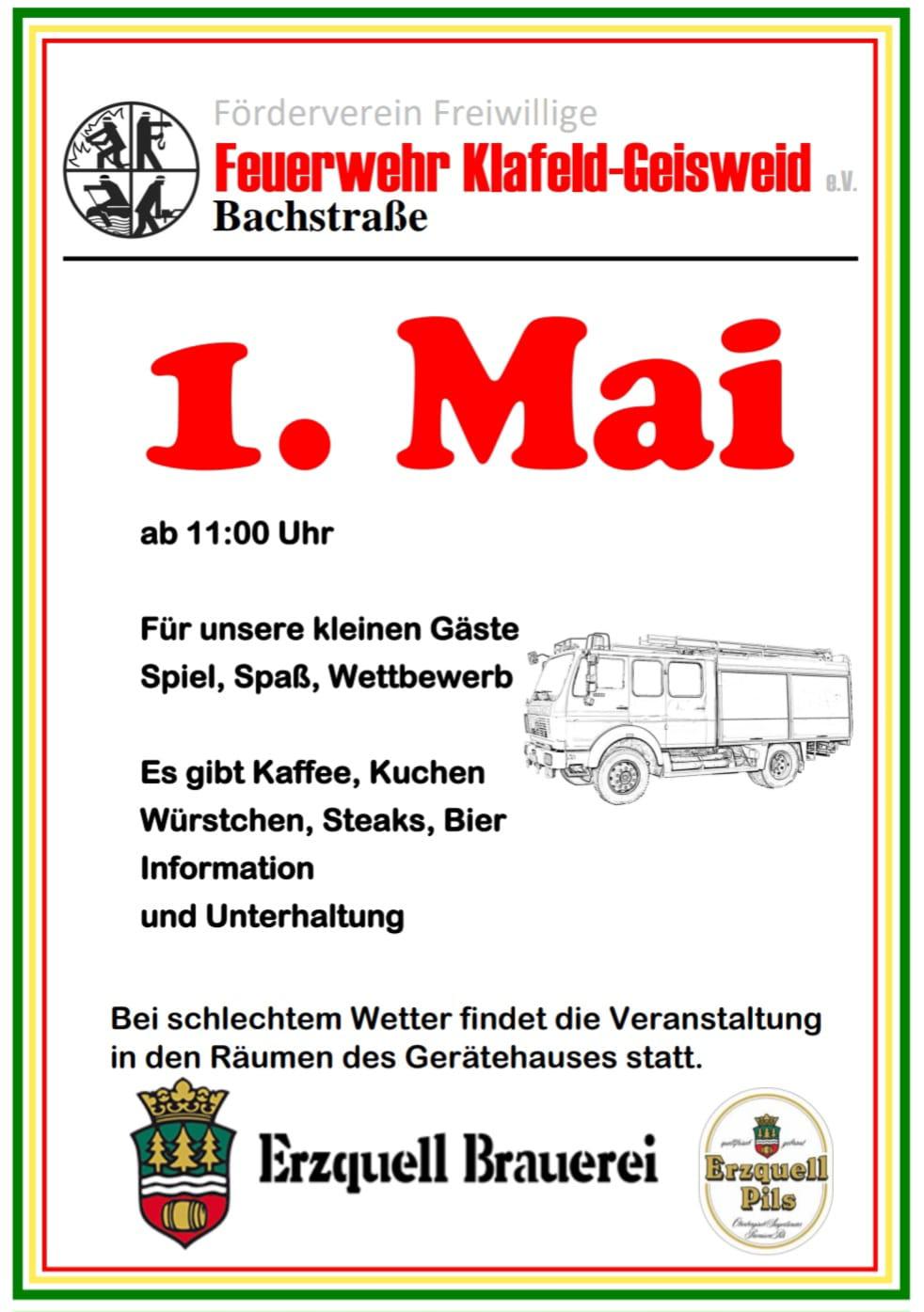 Werbeplakat 1. Mai Feier Förderverein Freiwillige Feuerwehr Klafeld-Geisweid e.V. © Förderverein Freiwillige Feuerwehr Klafeld-Geisweid e.V.