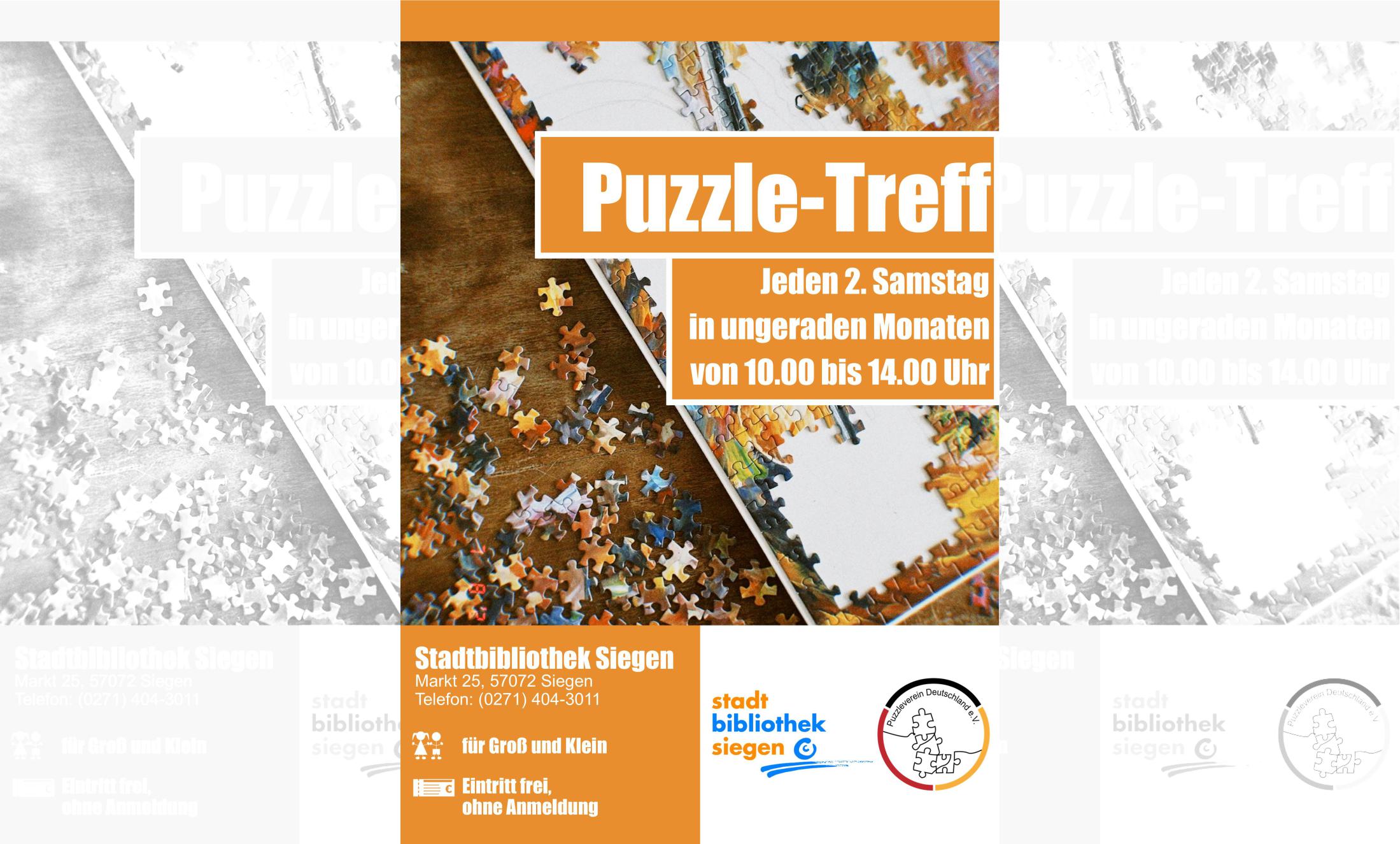 Ihr puzzelt gern in Gemeinschaft, möchtet Gleichgesinnte kennenlernen und euch austauschen? Ihr habt ein Puzzle zu Hause, was ihr schon immer mal fertig stellen wolltet, aber es alleine bisher nicht geschafft habt? Ihr wollt gern mal mit anderen Puzzlern zusammen auf Zeit puzzeln oder euch im Puzzleschach versuchen? Dann seid ihr beim Puzzle-Treff in der Stadtbibliothek Siegen genau richtig! Puzzeln erfreut sich zusehends größerer Beliebtheit. Kein Wunder! Das Hobby trainiert das Gehirn, kann entspannen, verbessert die Feinmotorik und Hand-Augen-Koordination. Auch, wenn ihr noch gar keinen Bezug zum Puzzeln habt, ihr aber Interesse für Puzzle oder die Puzzlegemeinschaft mitbringt, seid ihr beim Puzzle-Treff genau richtig. Bringt gern eigene Puzzle zum Legen und Tauschen mit. Der Puzzle-Treff findet am 2. Samstag in ungeraden Monaten statt. Eine Anmeldung ist nicht erforderlich und alle von Klein bis Groß sind herzlich willkommen.?