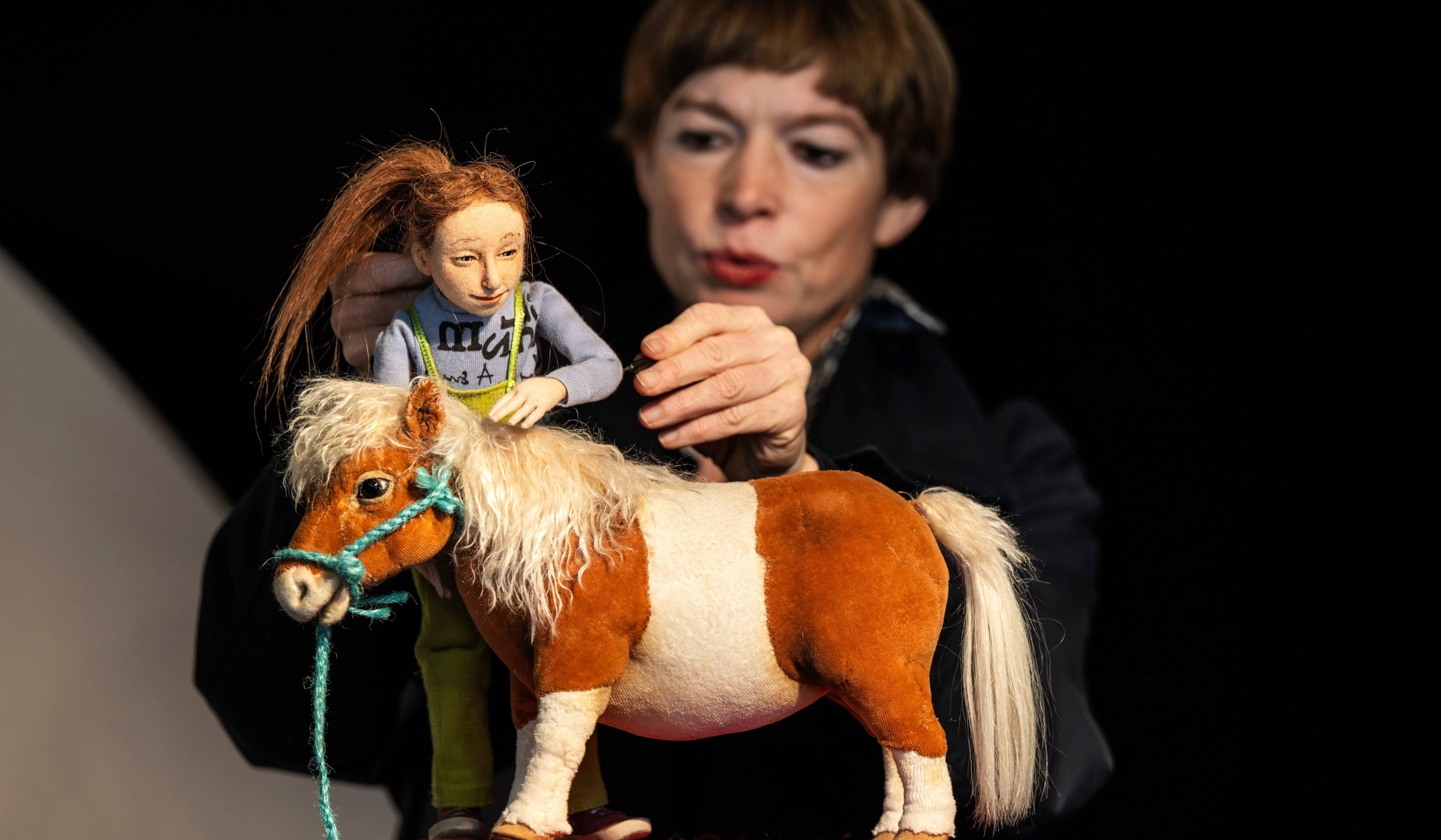 "Den Hauptgewinn bekommt man nie!", so sagt die Tante. Aber natürlich gewinnen die Kinder das Pony doch! Nun muss das Pony nach Hause geschmuggelt werden, vorbei an Hotelportiers, Schaffnern und der Tante. Denn Erwachsene wissen ja immer alles besser. Oder? Eine abenteuerliche Reise beginnt, auf der sich nicht nur Koffer stapeln, sondern auch Probleme. Mit dabei sind Tante Charlyn, zwei Puppen und ein dickes Pony. Dorothee Carls ist Absolventin der Hochschule für Schauspielkunst Ernst Busch in Berlin, Abteilung Puppenspielkunst. Seit 2006 arbeitet sie als Puppenspielerin in Engagements, wie zum Beispiel am Puppentheater Erfurt und am theater junge generation (tjg) in Dresden, sowie freischaffend mit eigenen Produktionen und in freien Theatergruppen wie dem Theater Urknall und dem Ensemble die exen.Koproduktion mit dem T-Werk e.V. Potsdam / Veranstalter: