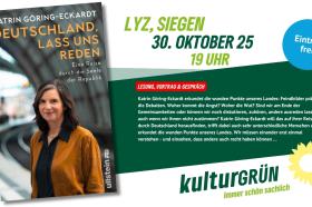 Lesung, Vortrag & Gespräch: Eine Reise durch die Seele der Republik | Wärmepumpen und Gendern; Geflüchtete und alte weiße Männer; Kriegstreiber und Pazifisten, Schwurbler und die Woke-Kultur: Feindbilder prägen die Debatten. Woher kommt die Angst? Woher die Wut? Sind wir am Ende der Gemeinsamkeiten oder können wir noch diskutieren, zuhören, andere ausreden lassen, auch wenn wir ihnen nicht zustimmen? Katrin Göring-Eckardt will das herausfinden. Sie begegnet auf ihrer Reise durch Deutschland unterschiedlichen Menschen - solchen, die zufrieden sind, aber auch solchen, die enttäuscht sind, sich benachteiligt fühlen und Veränderungen als Zumutung begreifen. Gibt es trotz aller Meinungsverschiedenheiten noch Dinge, auf die wir uns einigen können? Dazu müssen wir einander erst einmal verstehen - und einsehen, dass andere auch recht haben können.
