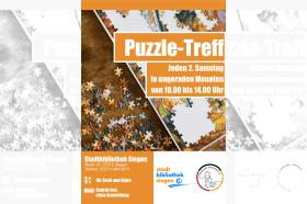 Ihr puzzelt gern in Gemeinschaft, möchtet Gleichgesinnte kennenlernen und euch austauschen? Ihr habt ein Puzzle zu Hause, was ihr schon immer mal fertig stellen wolltet, aber es alleine bisher nicht geschafft habt? Ihr wollt gern mal mit anderen Puzzlern zusammen auf Zeit puzzeln oder euch im Puzzleschach versuchen? Dann seid ihr beim Puzzle-Treff in der Stadtbibliothek Siegen genau richtig! Puzzeln erfreut sich zusehends größerer Beliebtheit. Kein Wunder! Das Hobby trainiert das Gehirn, kann entspannen, verbessert die Feinmotorik und Hand-Augen-Koordination. Auch, wenn ihr noch gar keinen Bezug zum Puzzeln habt, ihr aber Interesse für Puzzle oder die Puzzlegemeinschaft mitbringt, seid ihr beim Puzzle-Treff genau richtig. Bringt gern eigene Puzzle zum Legen und Tauschen mit. Der Puzzle-Treff findet am 2. Samstag in ungeraden Monaten statt. Eine Anmeldung ist nicht erforderlich und alle von Klein bis Groß sind herzlich willkommen.?